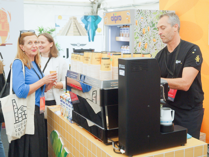 Adding to the energy of the stand is Alpro Barista Ambassador Damian Burgess, who has become a fixture at the festival. With his deep expertise, engaging presence, and passion for coffee, Damian demonstrates how Alpro Barista seamlessly integrates into the workflow of a café, from classic cappuccinos to contemporary signature drinks. His hands-on approach and infectious enthusiasm inspire both professionals and curious visitors to rethink what plant-based milk can be. For years, Alpro has stood as a proud partner of Ljubljana Coffee Festival, embodying its spirit of progress and openness. Their presence reminds us that coffee is not just about tradition, but also about innovation, diversity, and the joy of creating drinks that resonate with everyone.